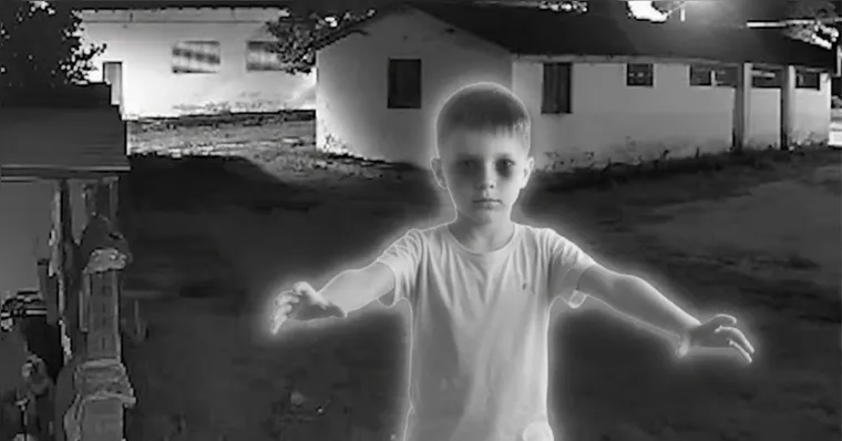 As imagens mostram o que aparenta ser a silhueta de uma criança caminhando sozinha por uma área aberta próxima a casas, por volta das 22h29 do último sábado (21). No vídeo, a figura surge de forma repentina no alcance da câmera e desaparece poucos segundos depois, sem que seja possível identificar sua origem ou destino.